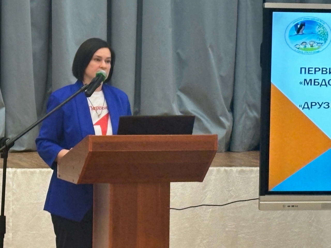 Татьяна Юрьевна поделилась опытом, рассказала о деятельности проекта "Друзья Первых" в детском саду, который объединил детей, их семьи и педагогов в отрядное дошкольное движение.