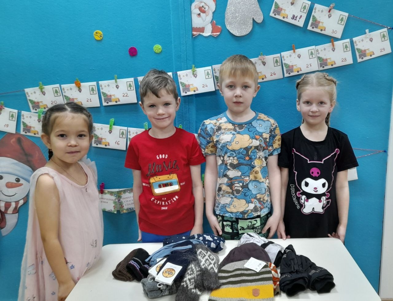 Теплые вещи: Мы собрали и передаем вязаные варежки и носки, чтобы согреть в холодные дни. Каждая петелька в них — это знак нашей заботы и поддержки.
